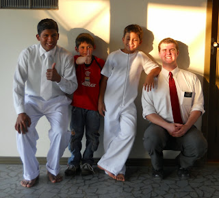 | Elder Pereirra, Marcelo, Lucas, Elder Long Elder Pereira got a cold from the cold water in the font! |